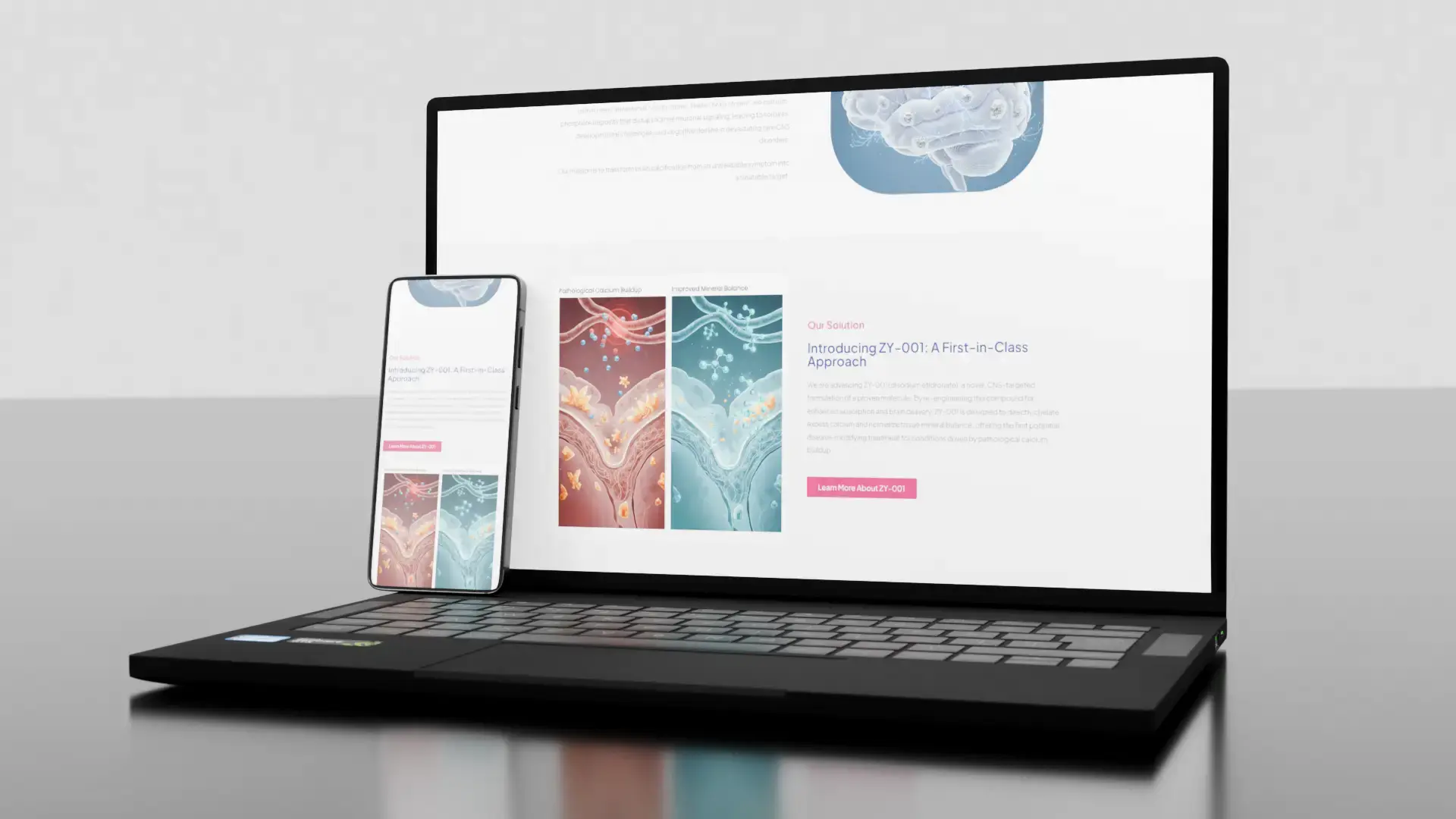 The result of the project is a modern and functional website that presents Zy Therapeutics as a serious, innovative, and trustworthy biotech company. The outcome is a digital presence that supports business communication, the presentation of research, and the continued development of the brand.